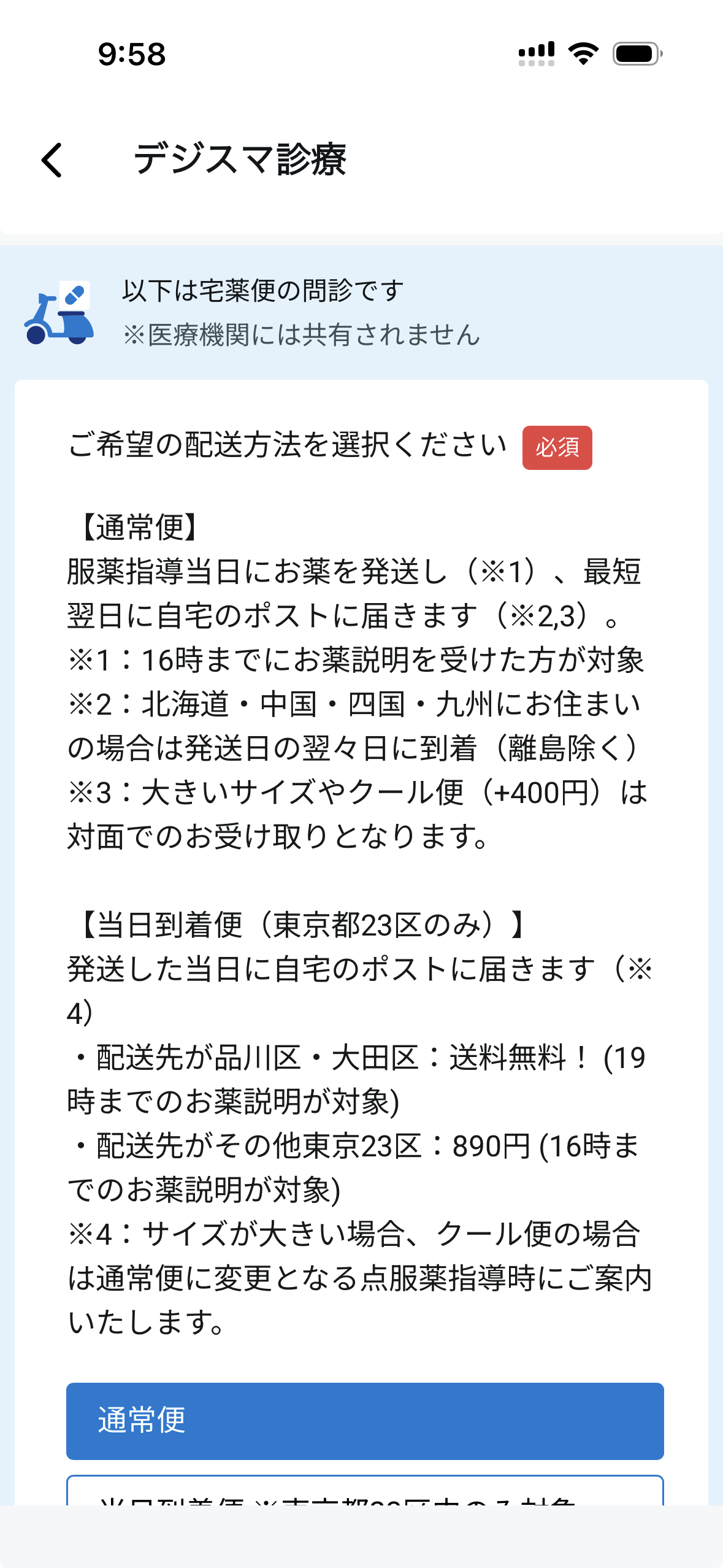 クリニックの予約時に「宅薬便を希望」にチェックしてください。