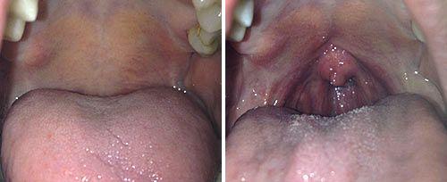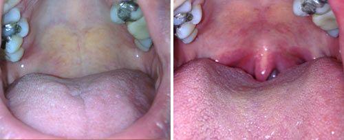 口蓋垂周囲の軟口蓋をレーザー照射し切除するため痛みはあり |